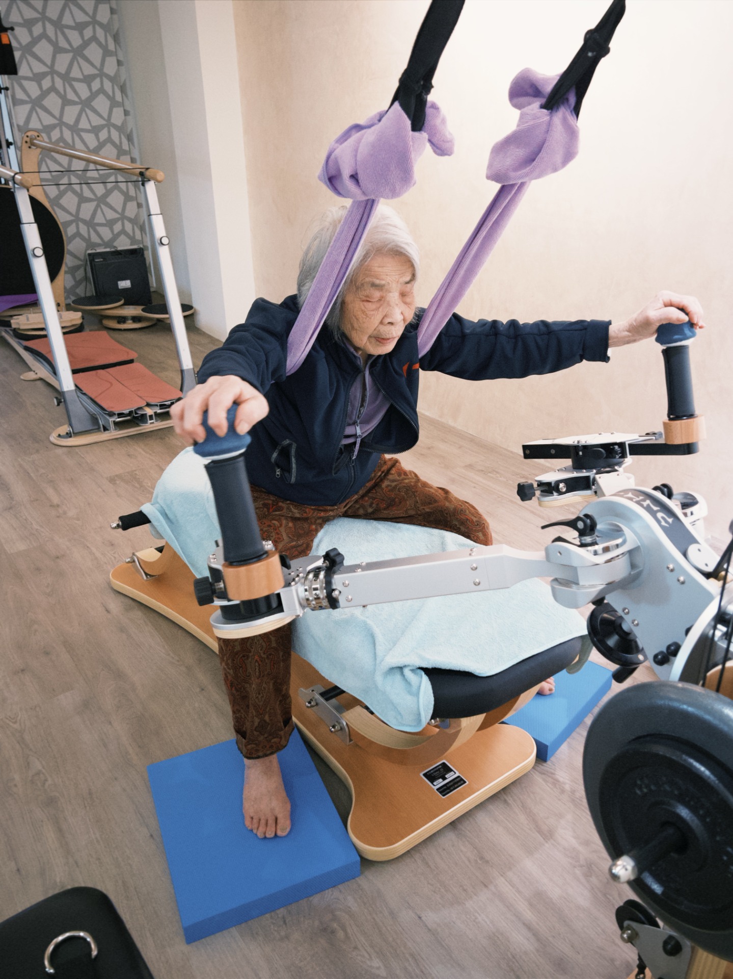 長期僵硬沾黏的肌肉與筋膜,在多面向動作的練習下可以像按摩似的被舒展放鬆,
